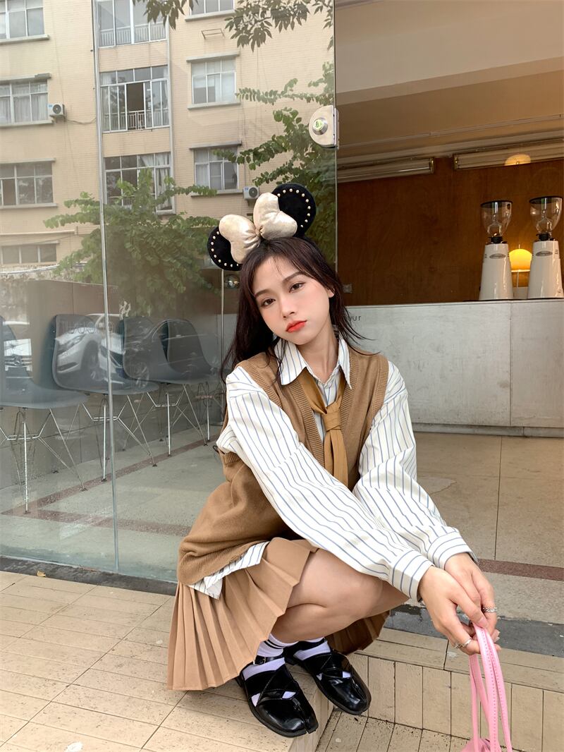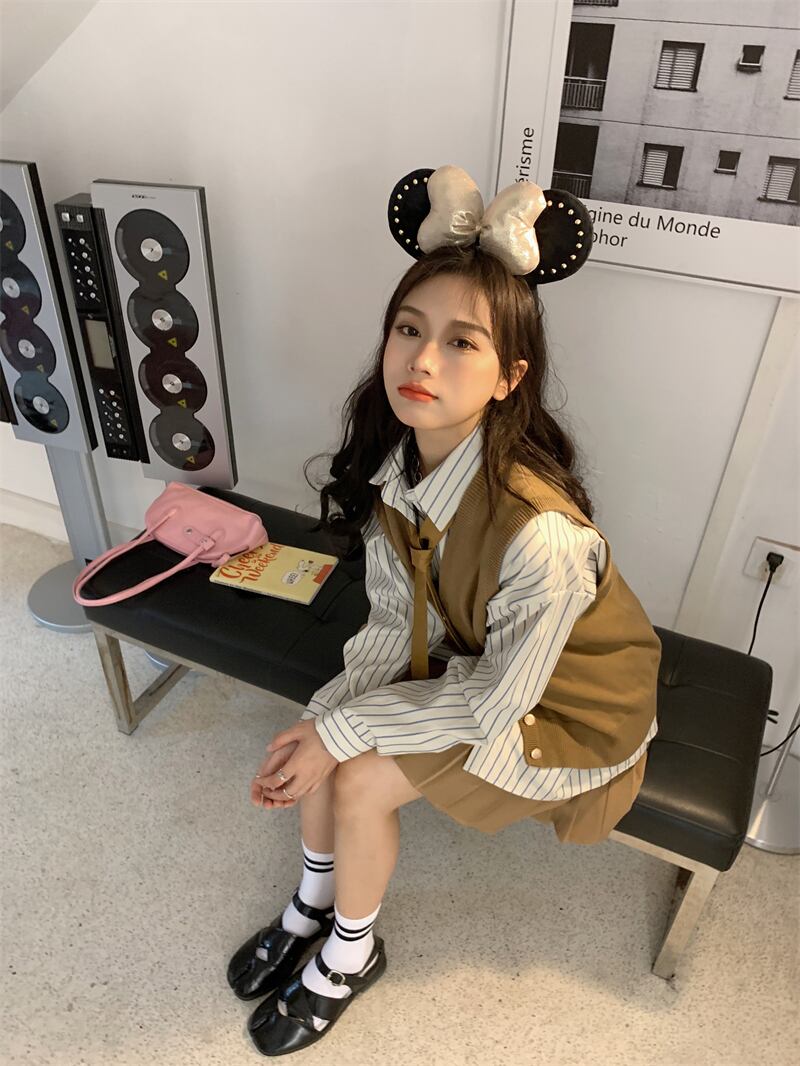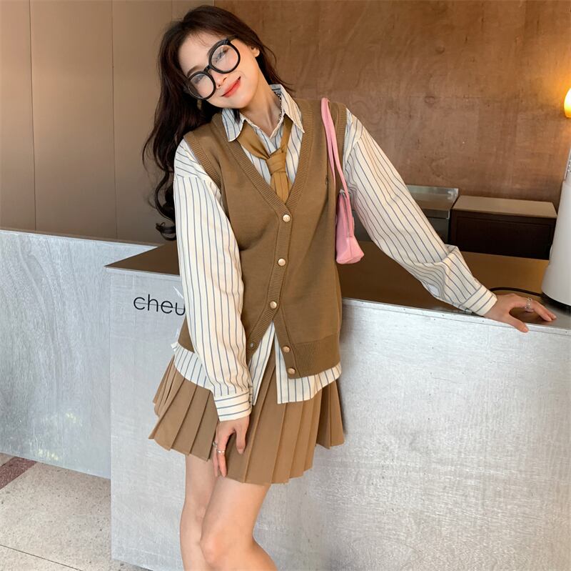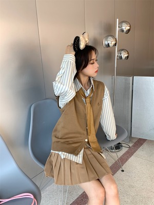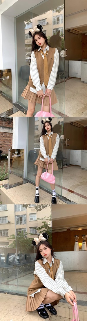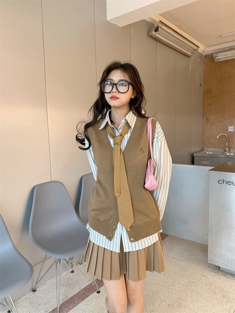 色:ストライプシャツ,ニットベスト,プリーツスカート,ネクタイ