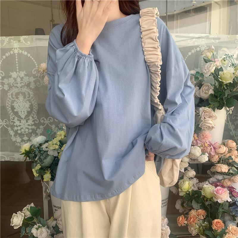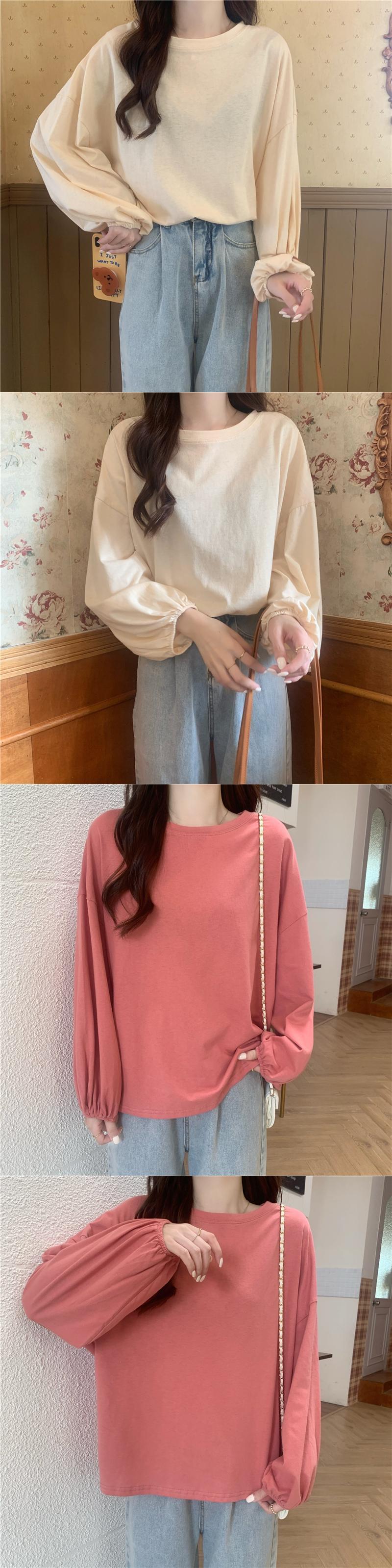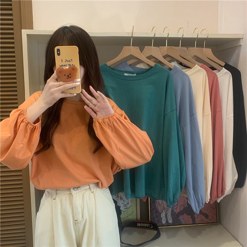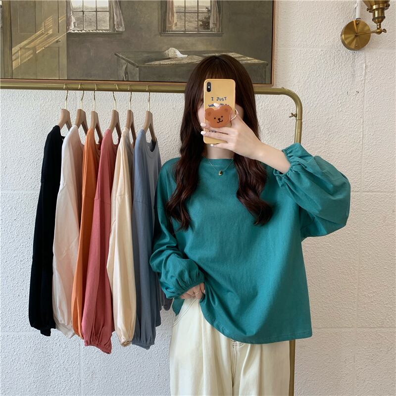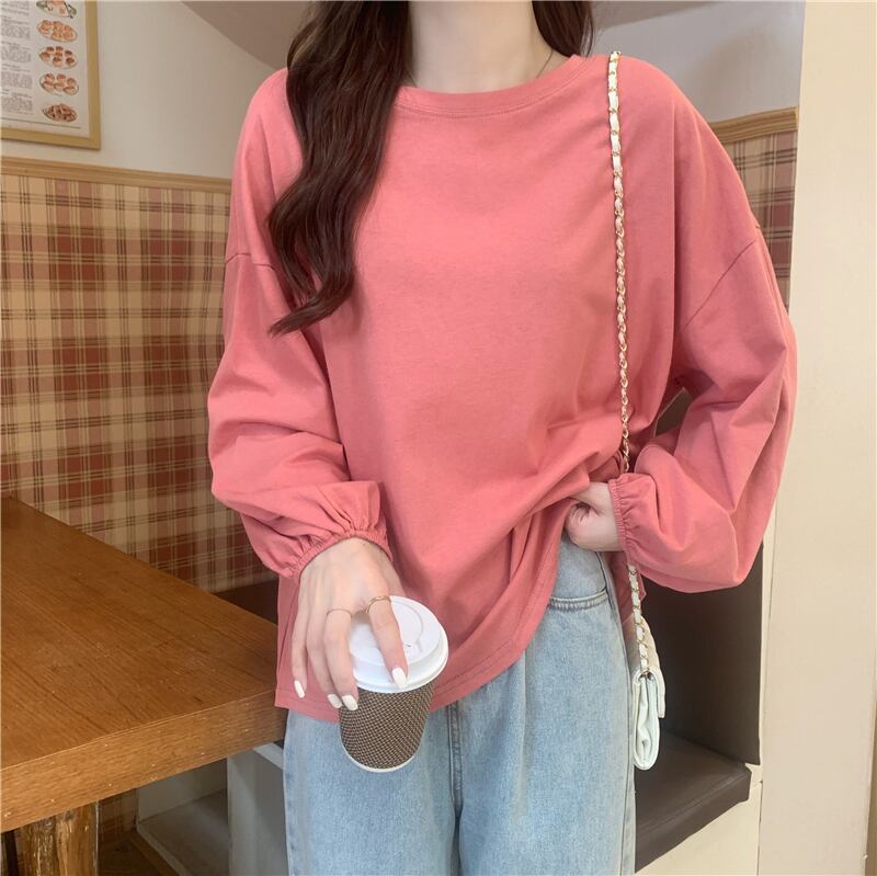 スリーブTシャツ オータムルーズ薄手ソリッド カラートップス 秋物 ソリッドカラー YY-ファッション81491252859