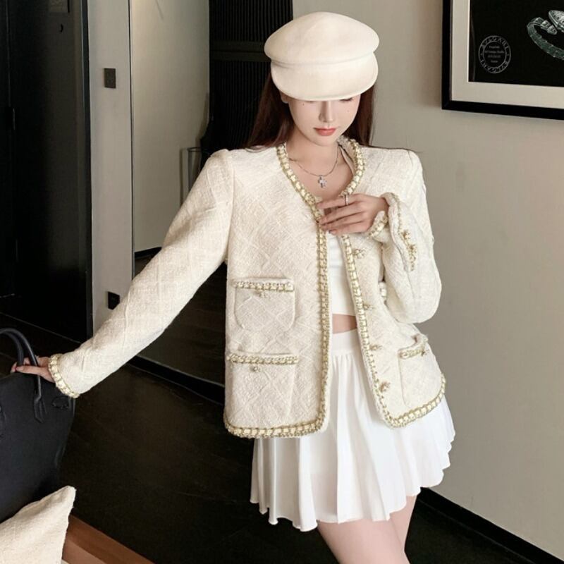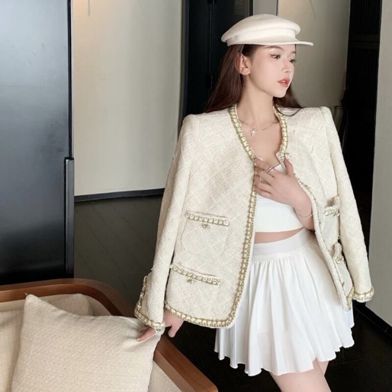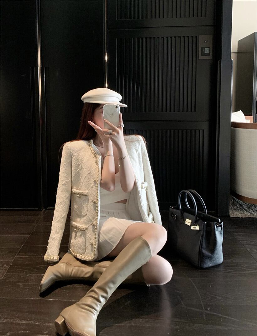 ルーズ長袖スリーブツィードジャケット オータムプリーツスカート ロング 秋物 YY-ファッション79323539632