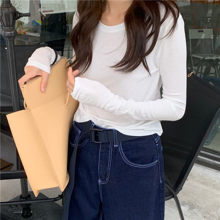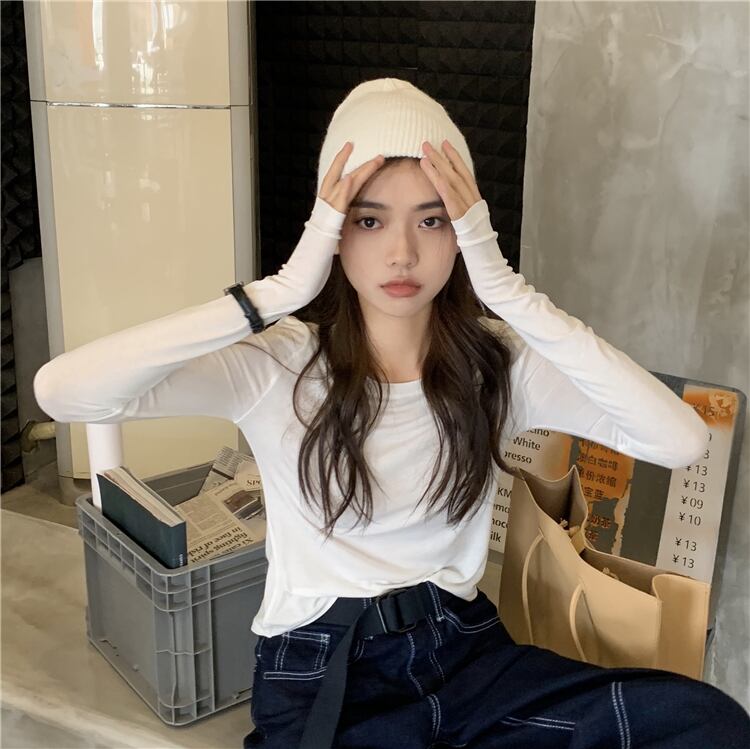 ベーシックホワイトスリムTシャツ シャツ オータム薄手 ロング 秋物 ピュア YY-ファッション67940543433
