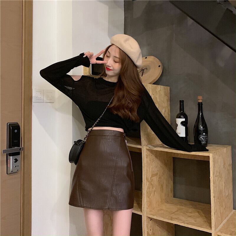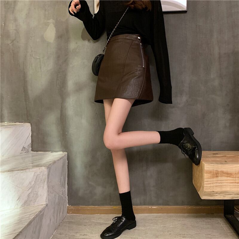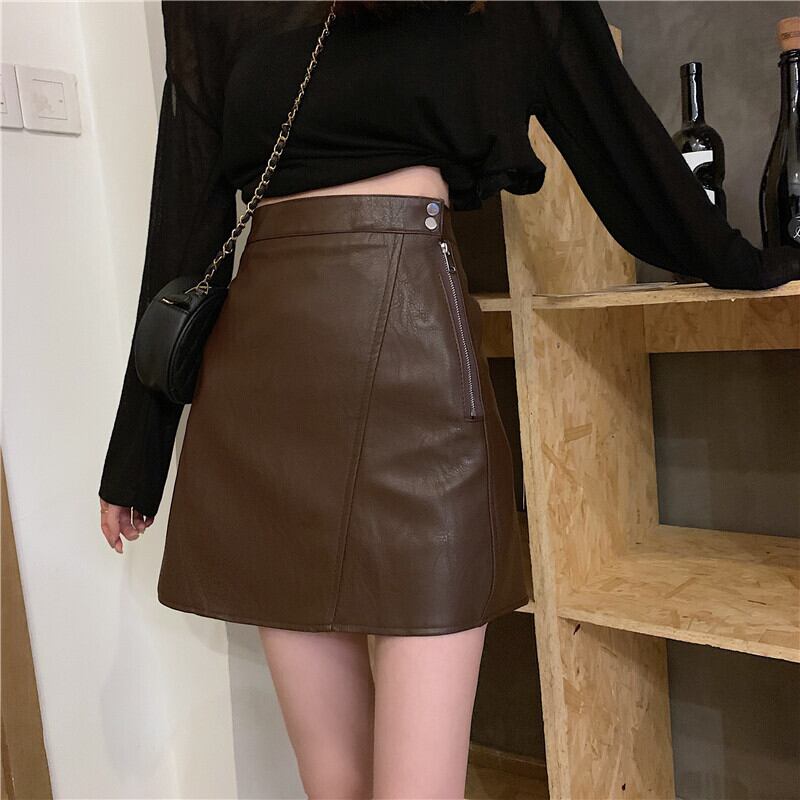 オータムハイウェストウェストレザージッパーショートスカート 秋物 YY-ファッション69241937825