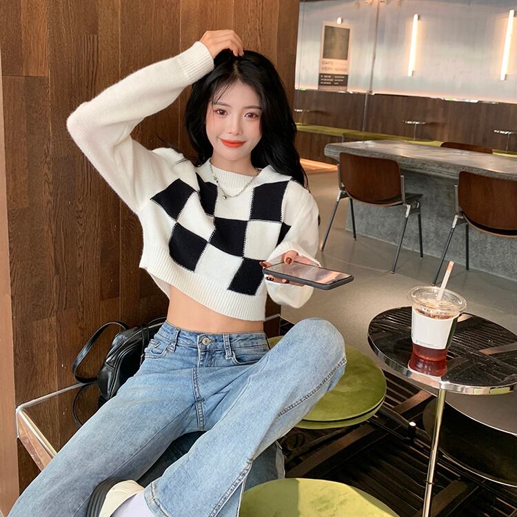 カラーセーター オータムショートスタイル ロング 秋物 YY-ファッション196891389