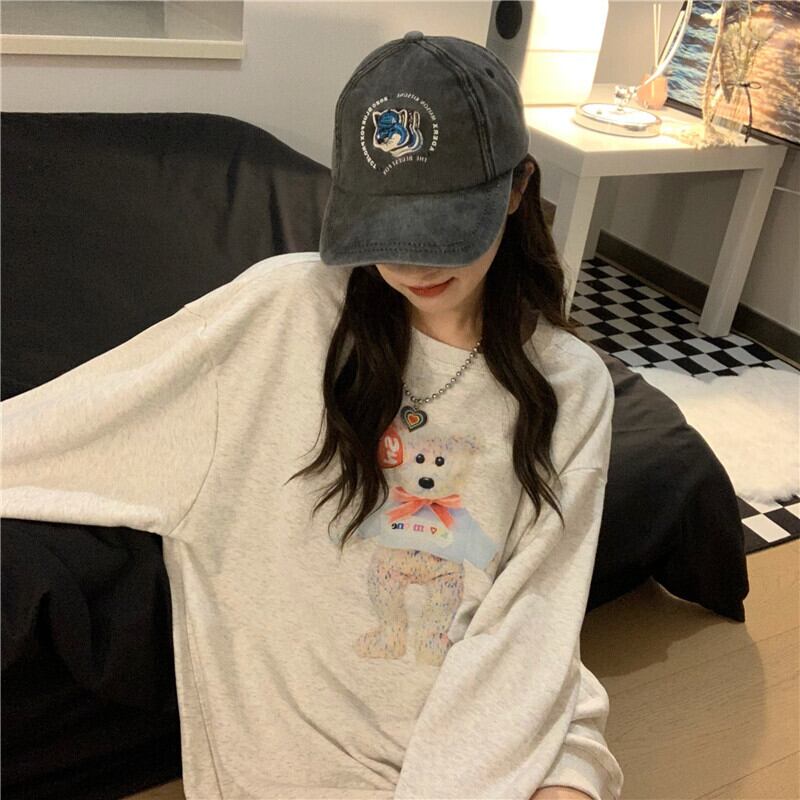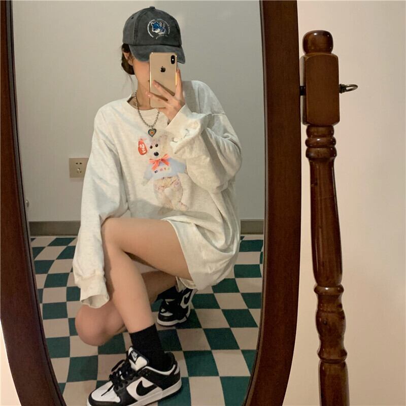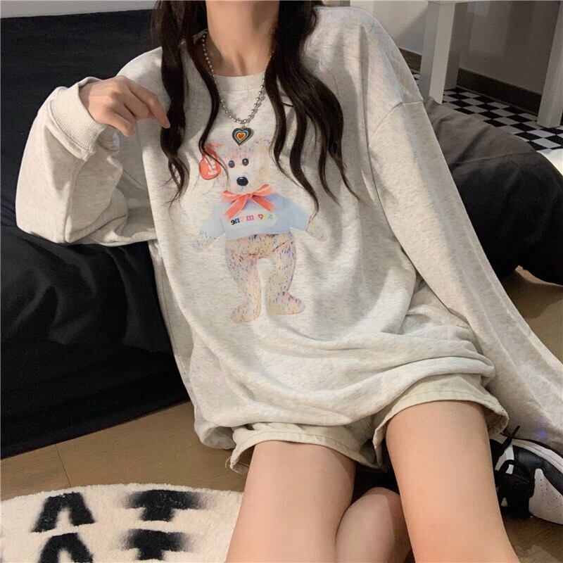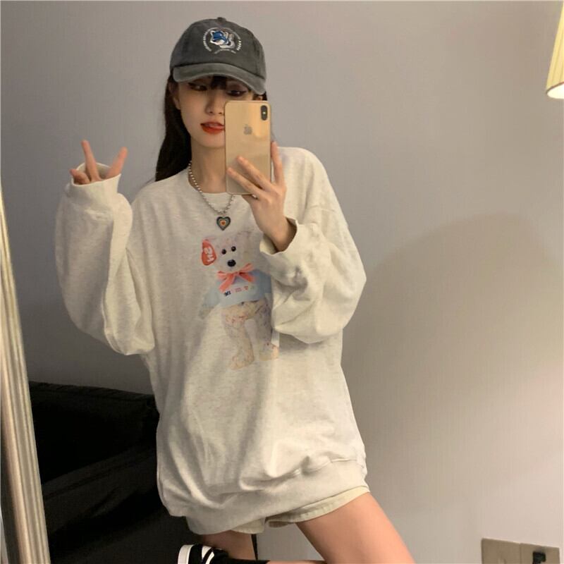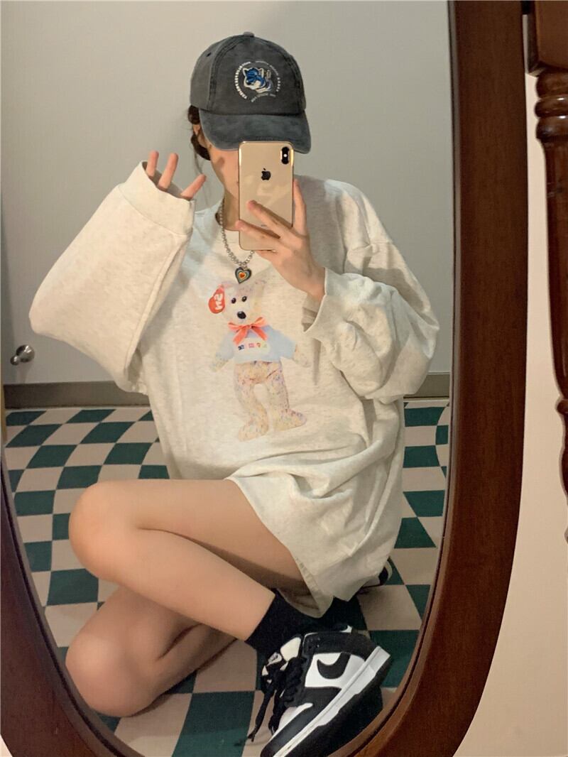 セーター レディースオータム薄手プリント柄ルーズラウンドネックトップス ロング ストリート 秋物 Oネック YY-ファッション76474952805