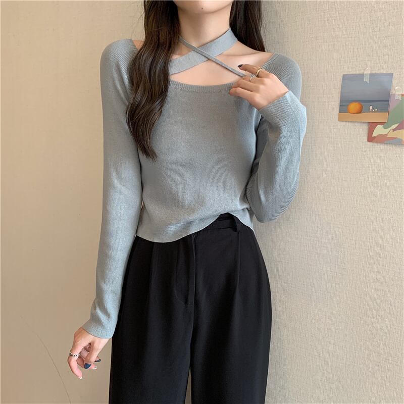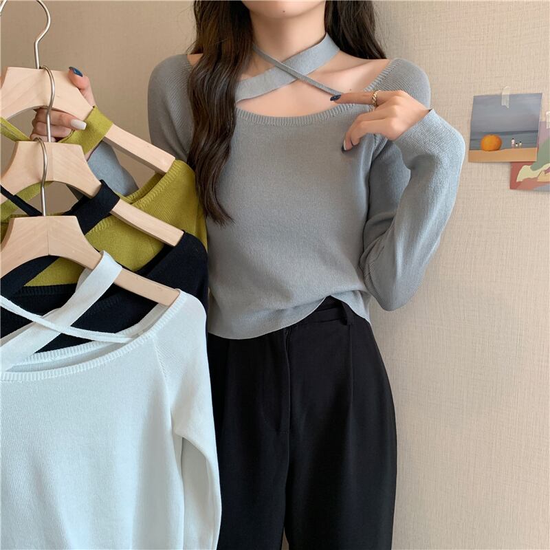 オータムストラップレスクロスソリッド カラーセーター ジャケット ロング 秋物 ソリッドカラー YY-ファッション81337765044