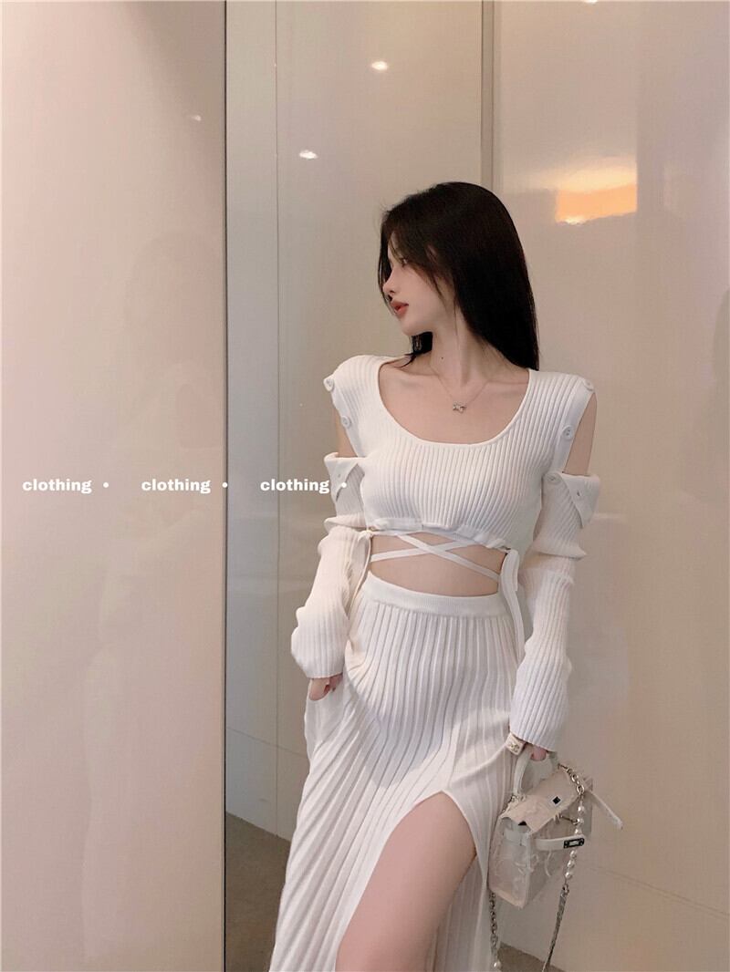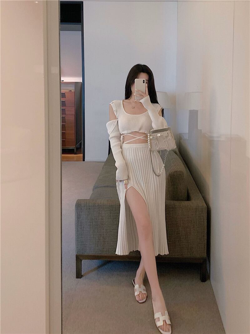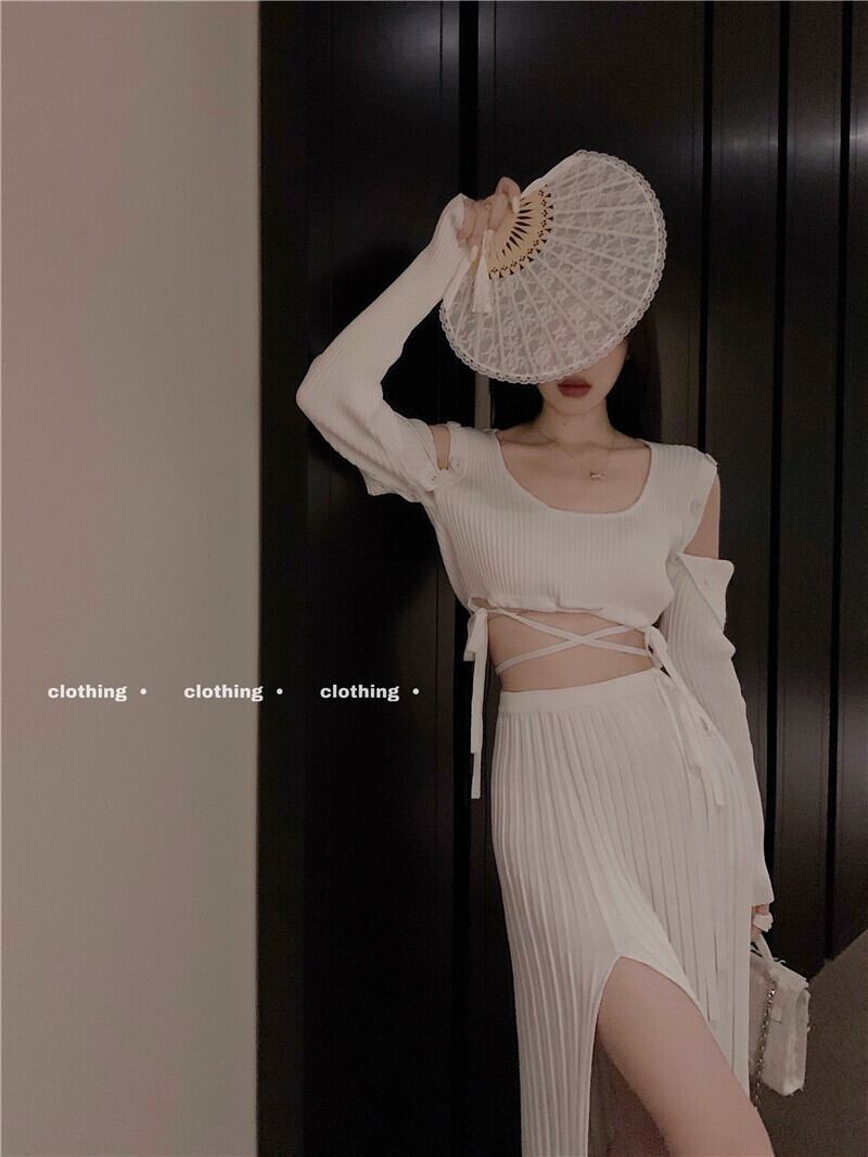 ニットセーター レディースオータムショートスリムホワイトプルオーバー トップス ロング 秋物 YY-ファッション11375315272