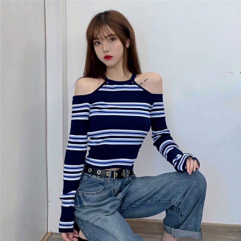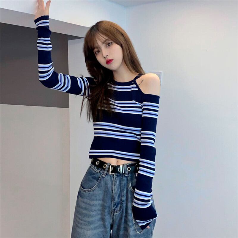 オータムスタイルスリムショートニット薄手トップス ロング 秋物 オフショルダー YY-ファッション32454289309