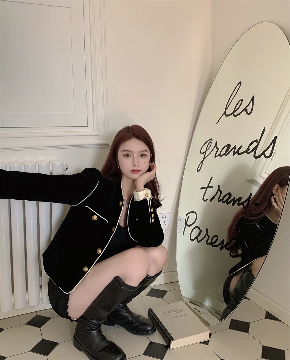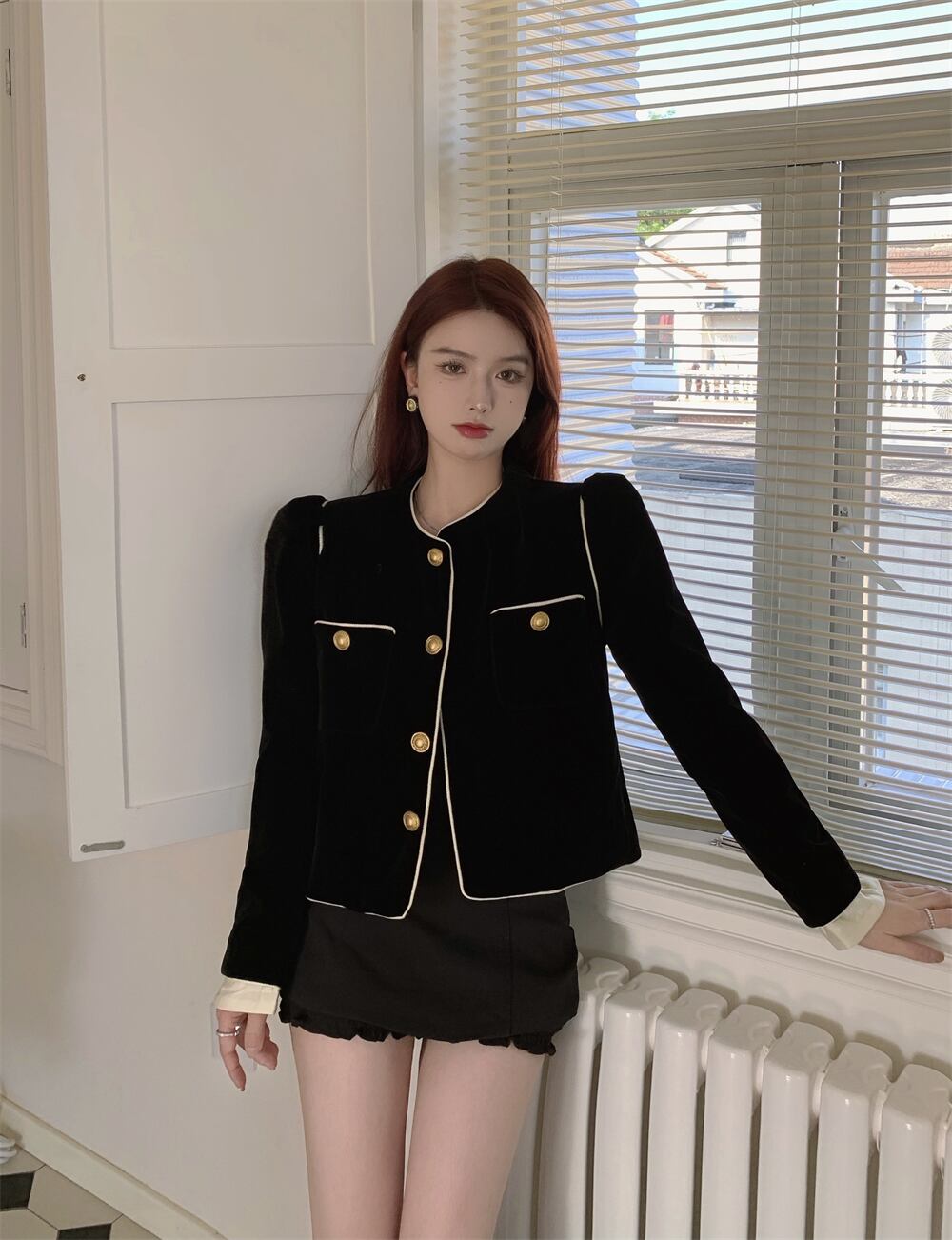 オータムラウンドネックジャケット スタンダードスタイルショート レトロ 秋物 Oネック YY-ファッション9561288870