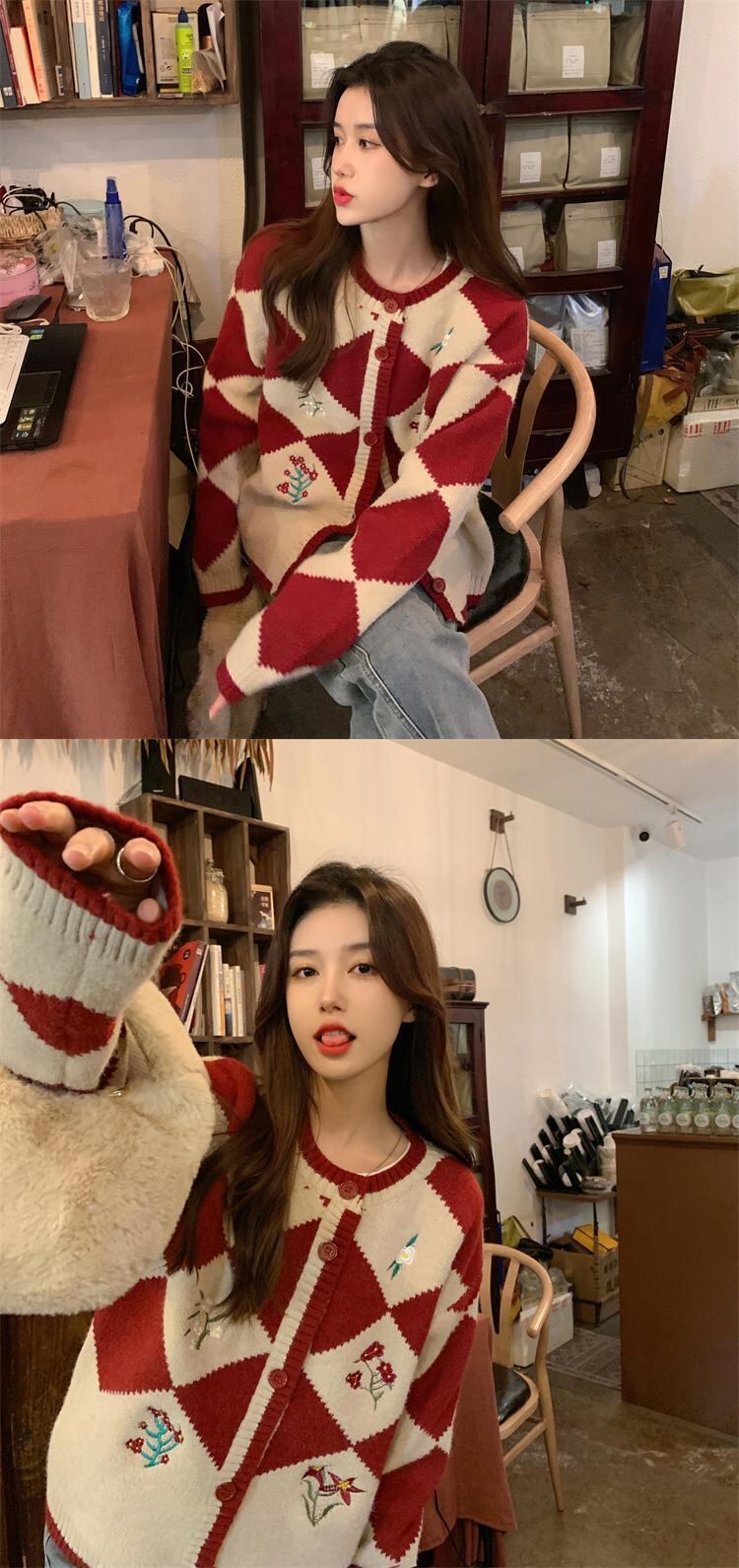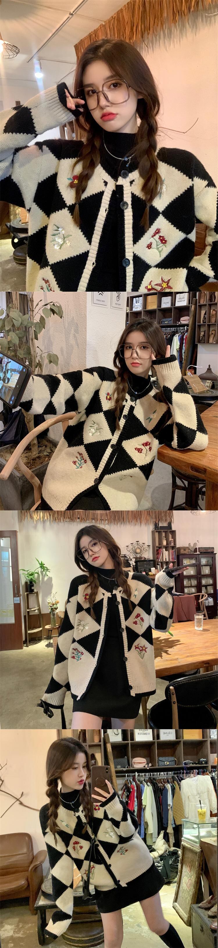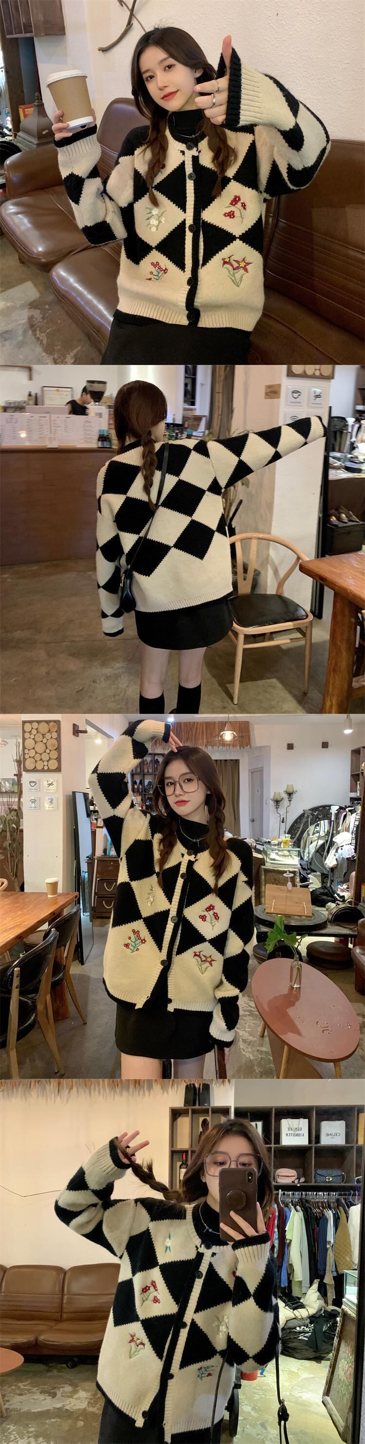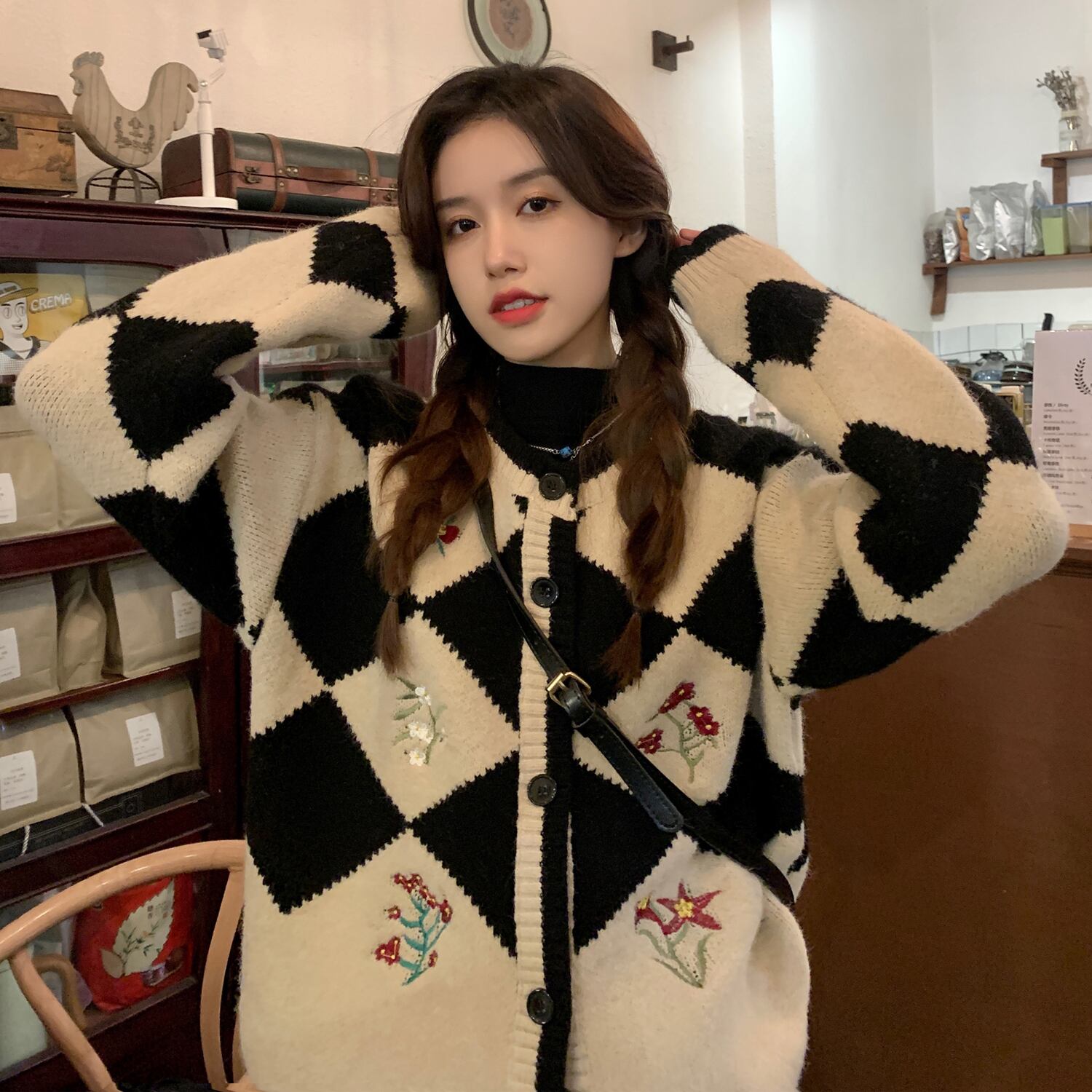 セーター オータムウィンタースタンダード刺繍パターンルーズニットジャケット ロング レトロ 秋物 冬物 YY-ファッション95171064804