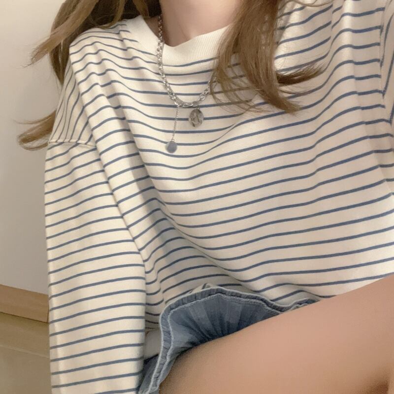 ストライプカジュアルジャケット オータムウィンタールーズラウンドネック ロング 秋物 冬物 Oネック YY-ファッション73417237639
