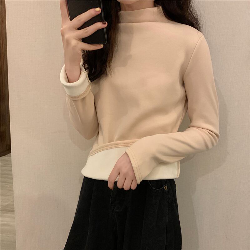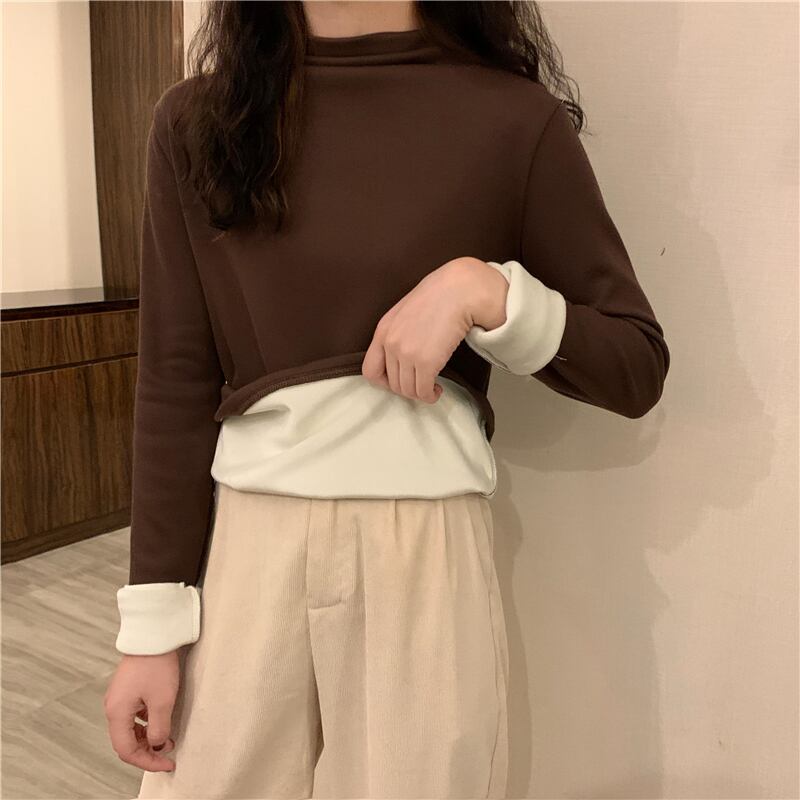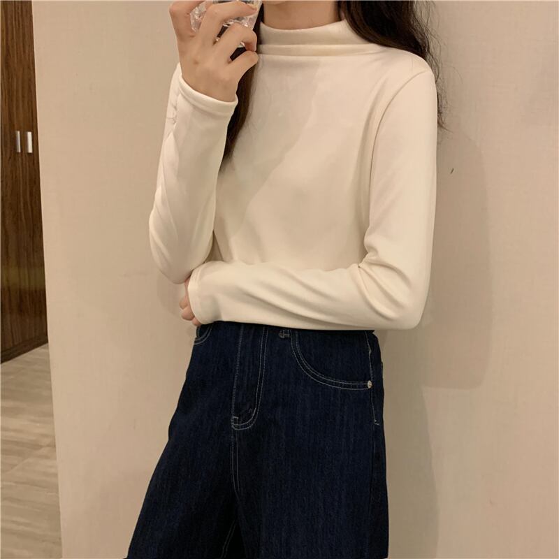 ソリッド カラーTシャツ シャツ オータムベルベットスリムトップス ロング 秋物 ソリッドカラー YY-ファッション76119252817