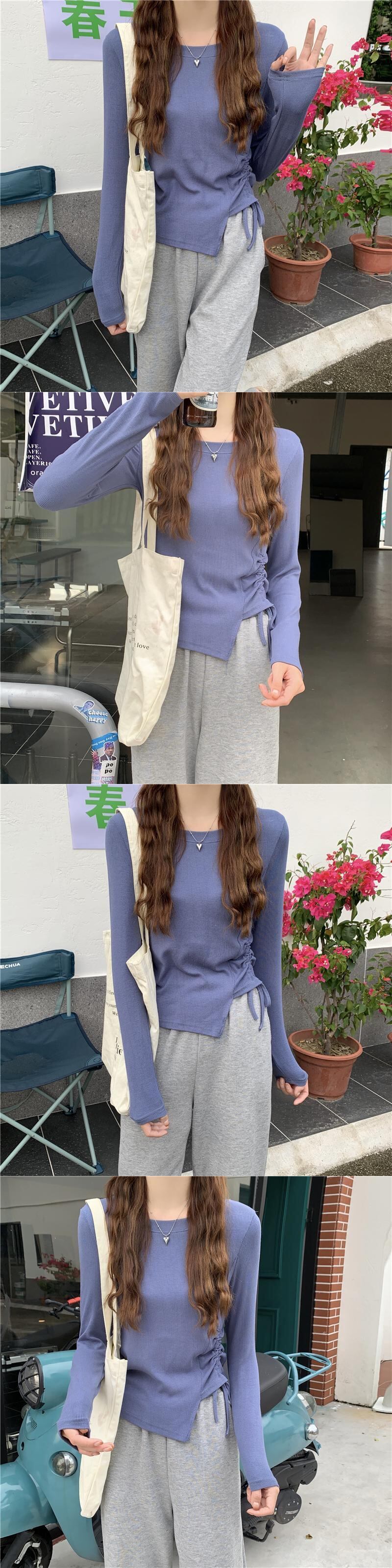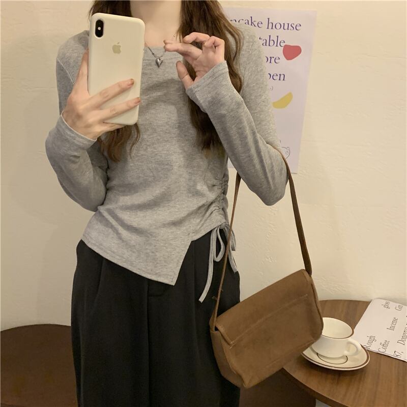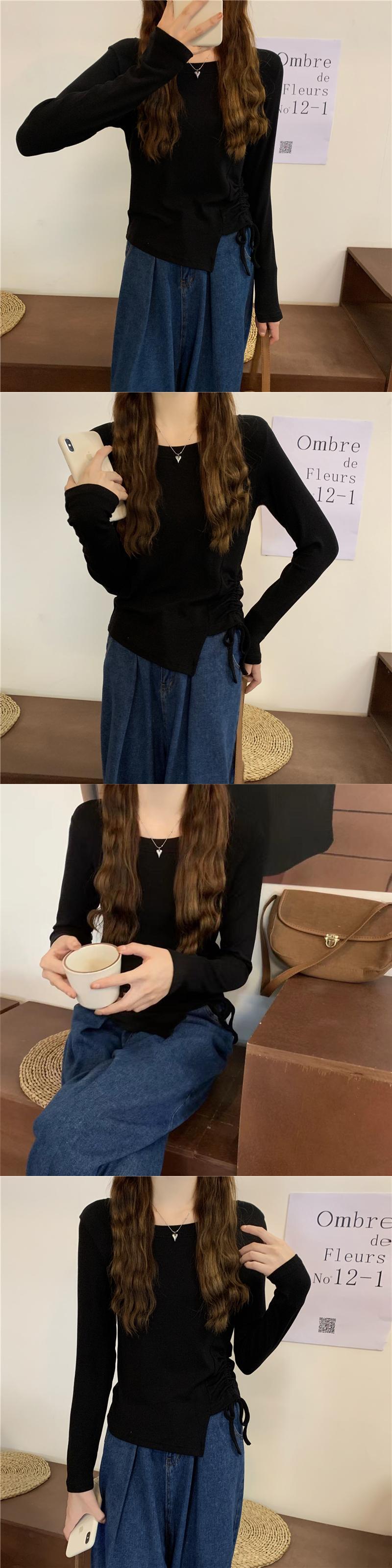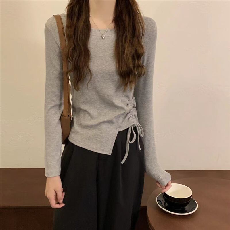スタイルショートギャザースリムフィットTシャツ グレートップス レディース ロング オータム 秋物 ウィンター 冬物 YY-ファッション86433581685