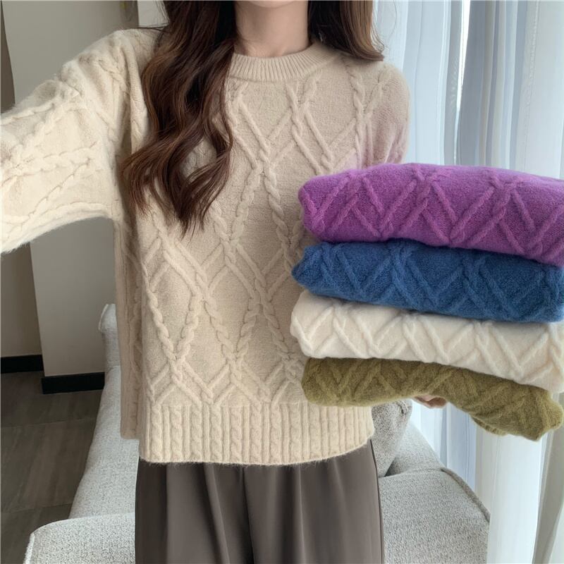 セーター オータムウィンターニットプルオーバー ショートルーズトップス ロング 秋物 冬物 YY-ファッション39290675170