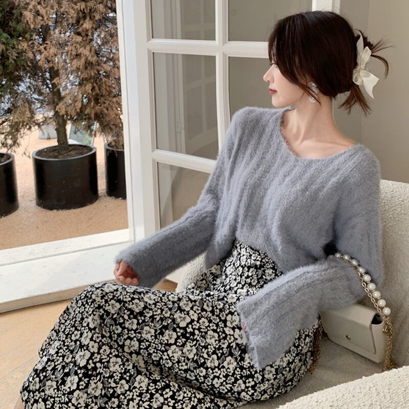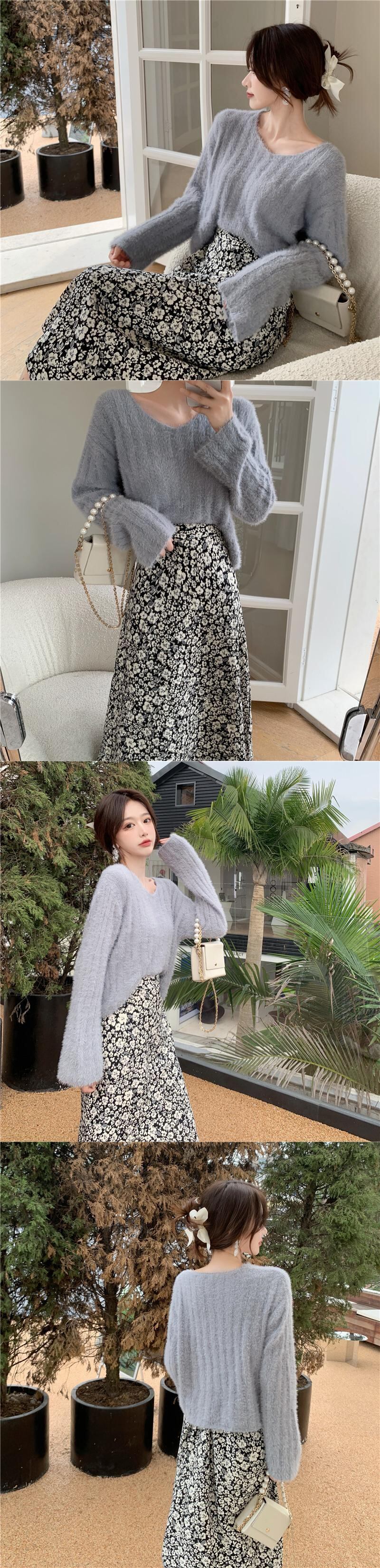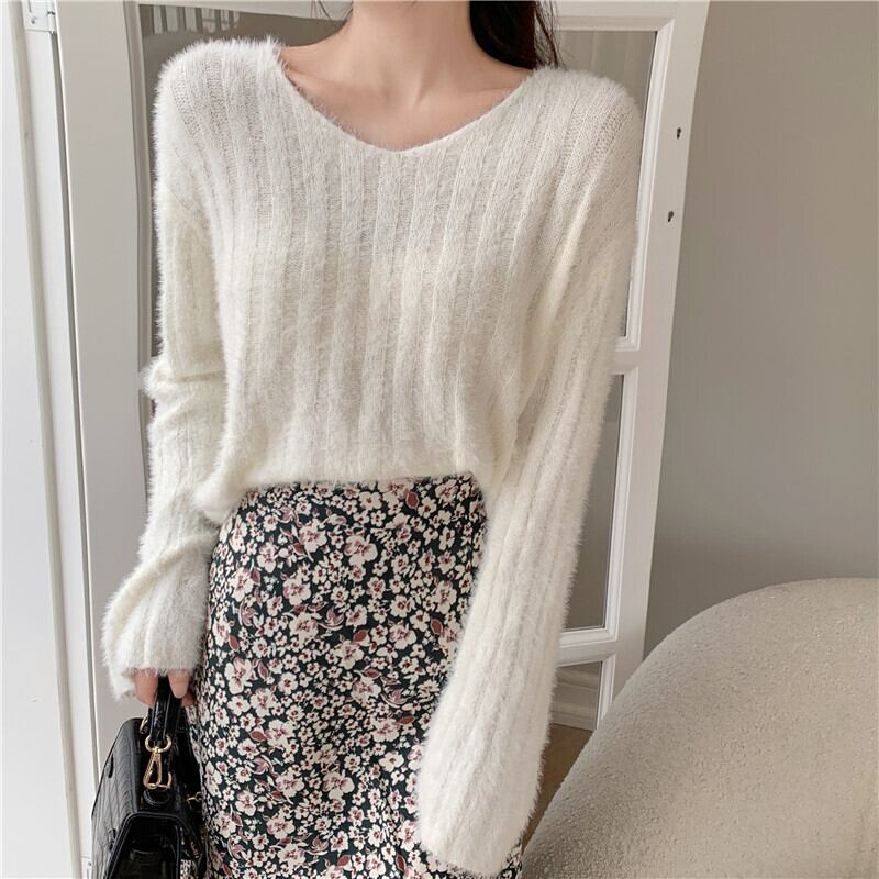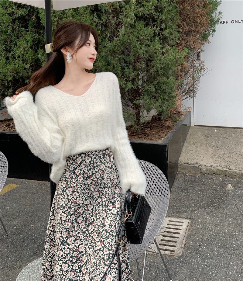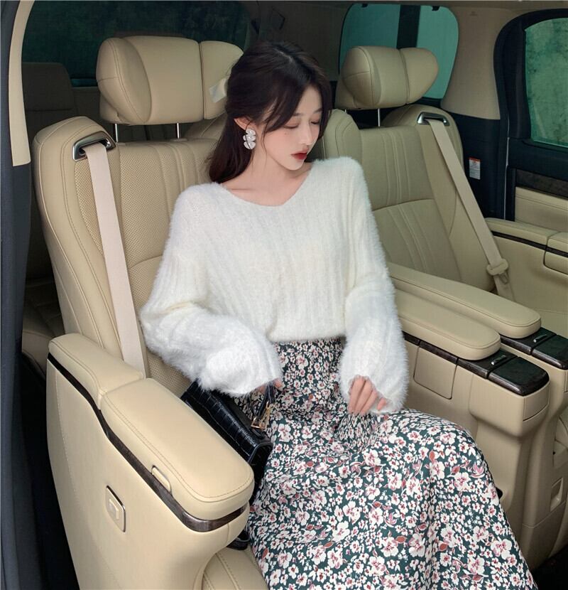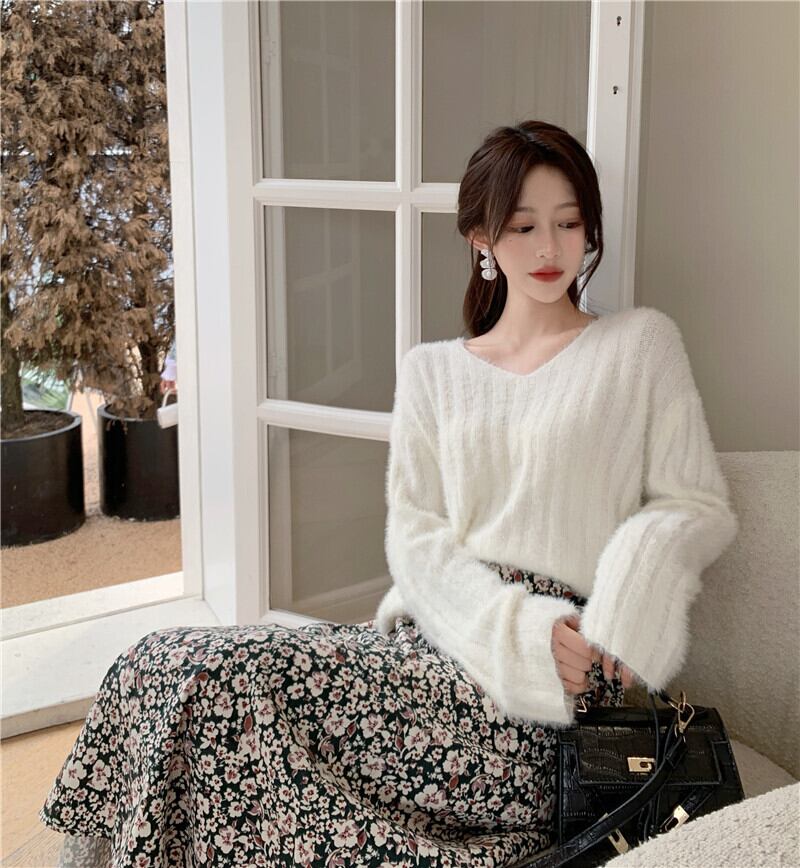 ショートセーター ルーズニットVネックプルオーバー トップス ロング ウィンター 冬物 YY-ファッション68214317770