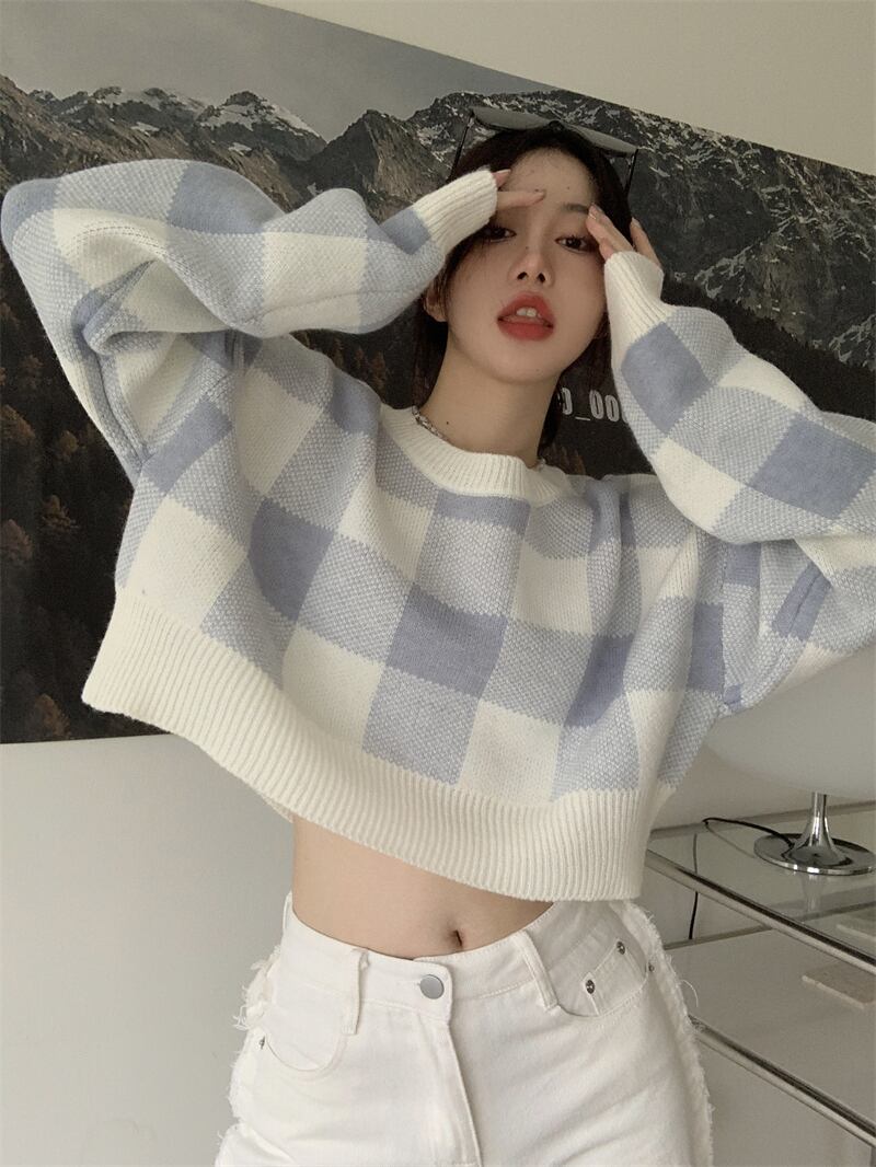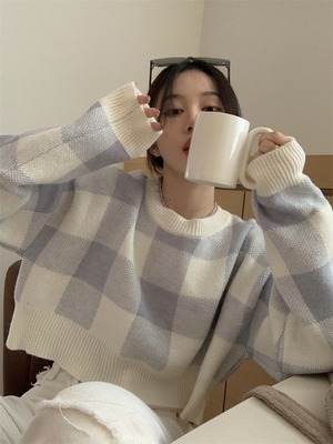 ニットセーター プルオーバー ラウンドネックルーズショートオータムウィンタートップス ロング 秋物 冬物 Oネック YY-ファッション66268273825
